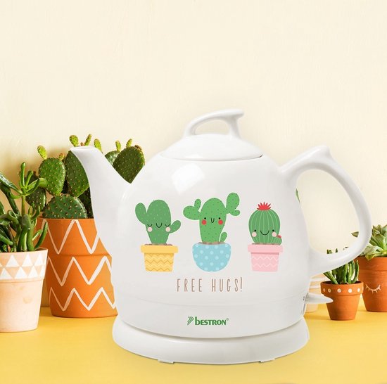 De elektrische waterkoker DTP800CA van Bestron heeft een inhoud van 0,8 L, is gemaakt van hoogwaardig keramiek en heeft een chique en schattig ontwerp.