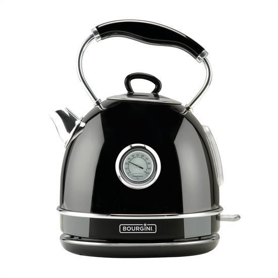 De Bourgini Thermo Kettle is een stijlvolle waterkoker met luxe RVS afwerking en retro design. Dankzij de inhoud van maar liefst 1,7 liter én een handige thermometer die de temperatuur aangeeft, maak je lekker veel thee op precies de goede temperatuur. Bovendien is deze hoogglans zwarte waterkoker snoerloos, wat het een praktische keuze maakt.