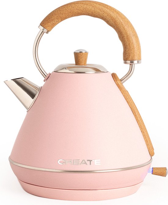 CREATE Waterkoker Retro – 2200 Watt – 1,7 Liter – RVS – BPA vrij – Elektrisch – Pastelroze – Kettle Retro L