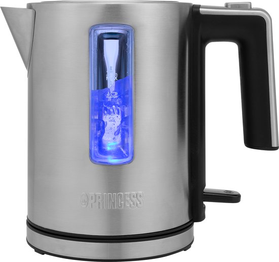 De Princess waterkoker heeft een roestvrijstalen behuizing, wat niet alleen erg stevig is maar ook erg modern. Door zijn minimalistische design past hij in elke keuken en met een inhoud van 1L neemt hij ook nog eens weinig ruimte in beslag. Daarnaast geeft de waterkoker ook een mooi blauw licht als hij aan het koken is. Wanneer het licht uit gaat weet je dat het water op temperatuur is. Door de handige waterniveau indicator kun je precies zien hoeveel water er nog in zit.