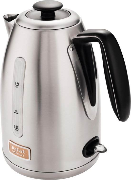 Tefal Maison Inox KI260810. Capaciteit watertank: 1,7 l. Vermogen: 3000 W. Kleur van het product: Zwart, Roestvrijstaal, Materiaal behuizing: Roestvrijstaal, Waterniveau-indicator. Draadloos. Filtratie